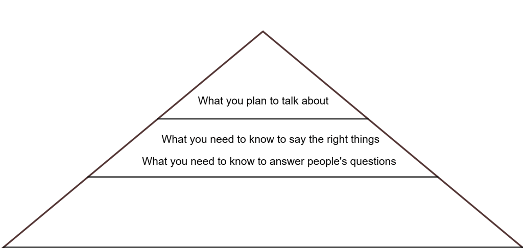 This graphic shows how you need to know a lot more about a topic than you actually plan to talk about: