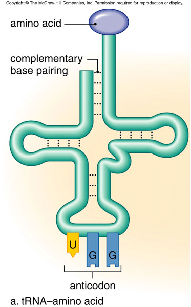 - tRNA is a short strand of RNA that guides an amino acid into place on the developing strand of protein.