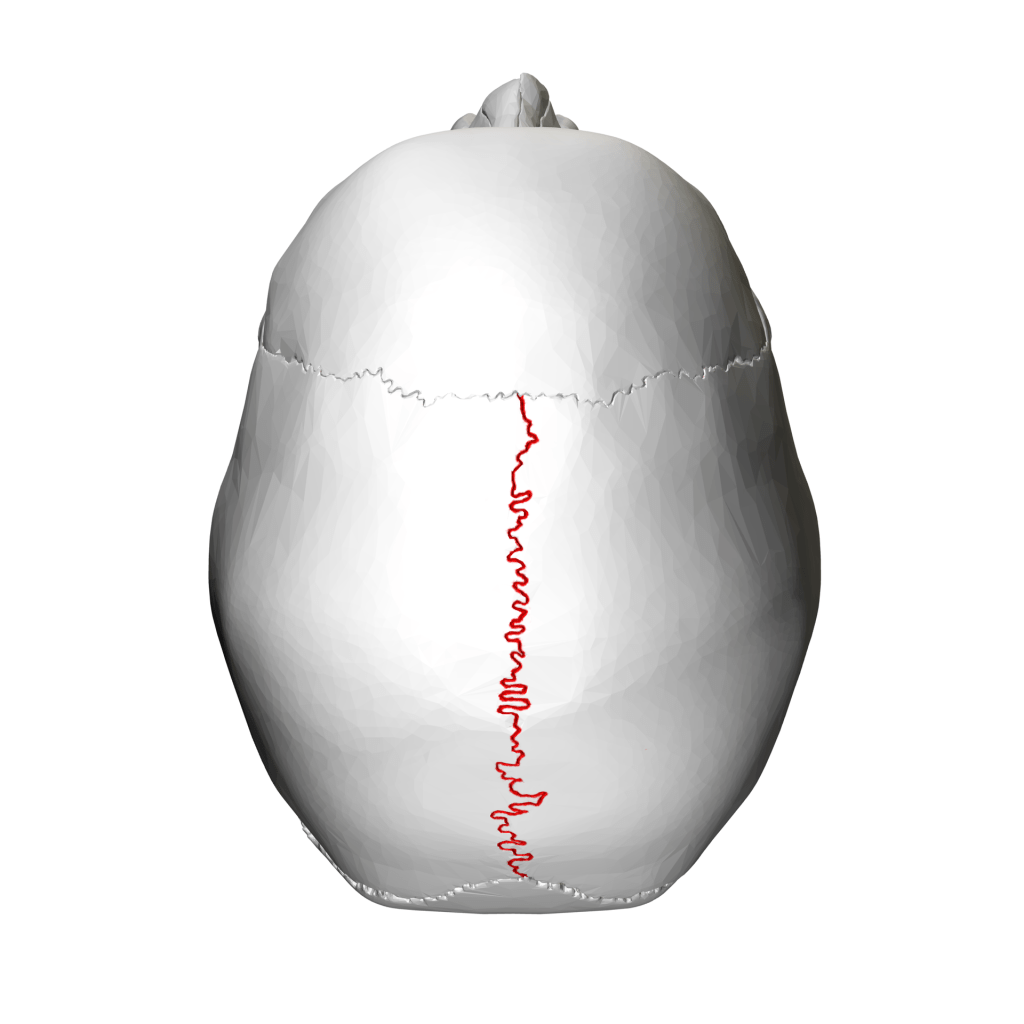 Sagittal suture – The fibrous joint connecting the two parietal bones of the skull, running along the top of the head in a line that resembles an arrow.