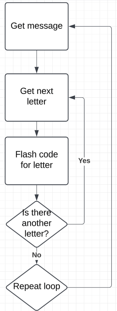 Sometimes we want a block of code to only be used if certain conditions are met. In this case, we want the Arduino to flash three dots if the next letter is an “S”. We can do this with this code: