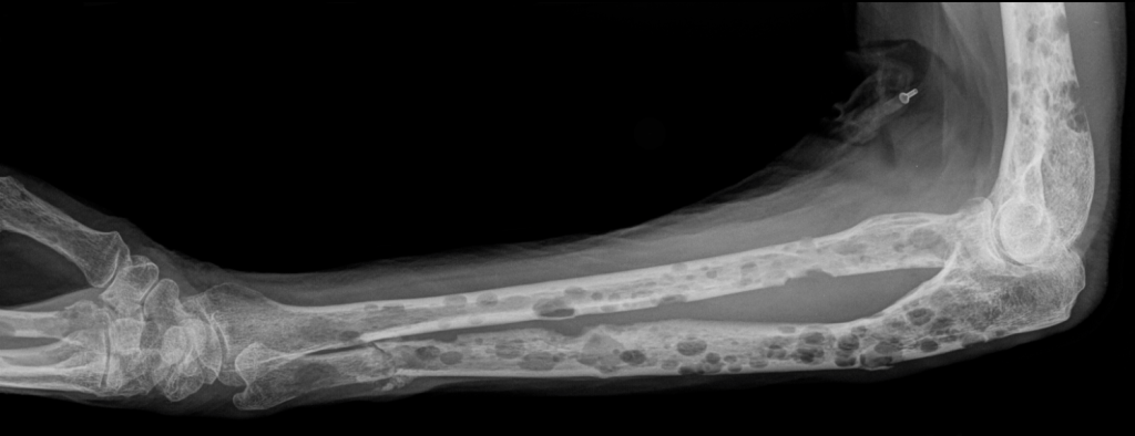 As an adult continues to age, the joints begin to show signs of wear and tear and their bones become thinner as they develop osteoporosis. The speed at which this happens varies a lot from people to people. The best you can say is that this is the x-ray of an “old person”.