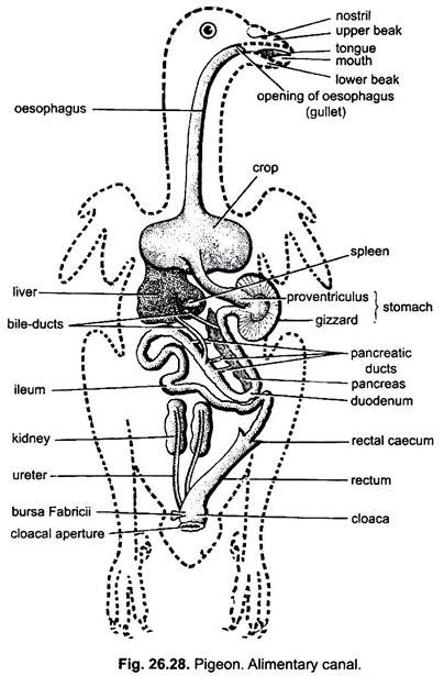 In fact, the cecum in birds is duplicated, and does branch off the intestines, similar to the human appendix. However, it still seems that in this diagram the label for the rectum would be better placed after the cecum label.