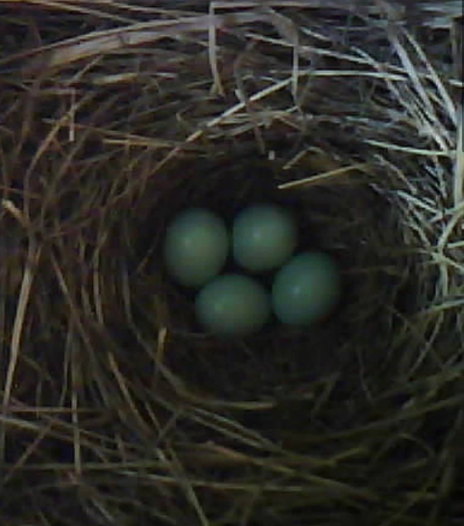 Based on WiFi observations, my best estimate of egg laying is 4/7/25 for the third egg and 4/8/25 for the 4th egg.
