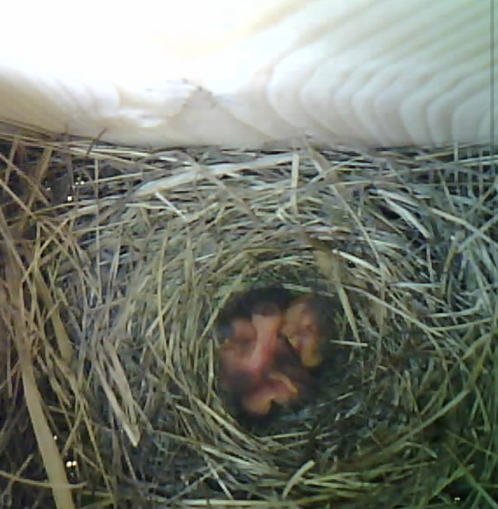 Movement of grass in the nest suggested that the birds were frequently visiting the nest but did not stay long.